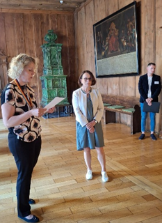 Frau Gertrud Maltz-Schwarzfischer begrüßte die erfolgreichen Schreiberinnen und Schreiber im Kurfürstenzimmer des Alten Rathauses. Sie meinte, dass es schön wäre, wenn auch einmal einer Ihrer