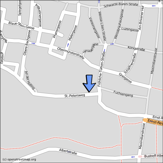 Anfahrt Stenografenverein Regensburg 1864 e. V. St.-Petersweg 17 93047 Regensburg Zimmer 205 Interaktive Karte